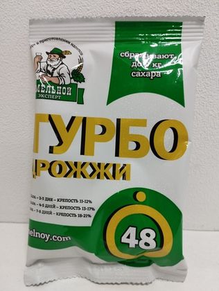 Способ приготовления: 67 кг сахара тщательно растворить в 133 литрах подготовленной очищенной воды (30-35 градусов), добавить воды до 333 л и внести 1000 г ДРОЖЖИ от хмельного эксперта. Емкость должна быть заполнена не более чем 3/4. Температуру брожения важно поддерживать не выше 27 градусов С и не ниже 23 градуса С. Данные дрожжи разработаны для сбраживания браг на чистом сахаре , однако используется с любым осахаренным суслом, сухими экстрактами, экстрактами солодовых и зерновых культур и других видов сырья. Срок годности 24 мес. при температуре 10-20 градусов С.