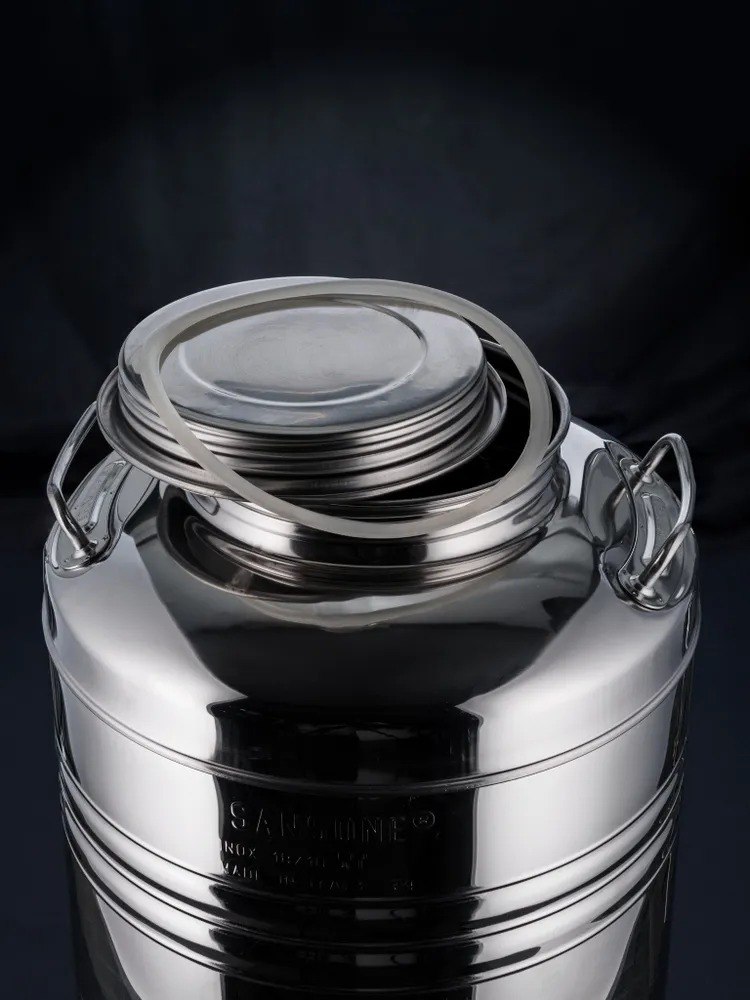 - Бидон подходит для использования в качестве бродильной емкости. Нержавеющая сталь, из которой он выполнен, нейтральна к кислотам и средам, поэтому вы можете не беспокоиться за свое сырье. Для брожения вам потребуется только установить гидрозатвор.